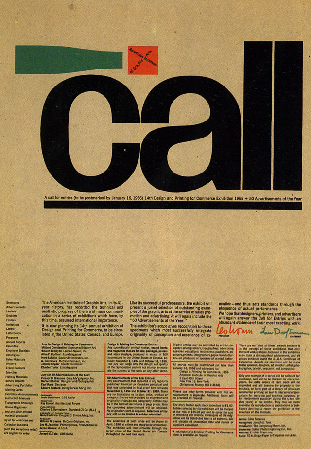 فراخوان داوطلب که در سال 1956 میلادی، برای موسسه هنرهای گرافیک ای آی جی طراحی شد. "فدریکو" در این جا از حروف برای خلق یک اعلامیه تجسمی برجسته و مشخص بهره برده است.