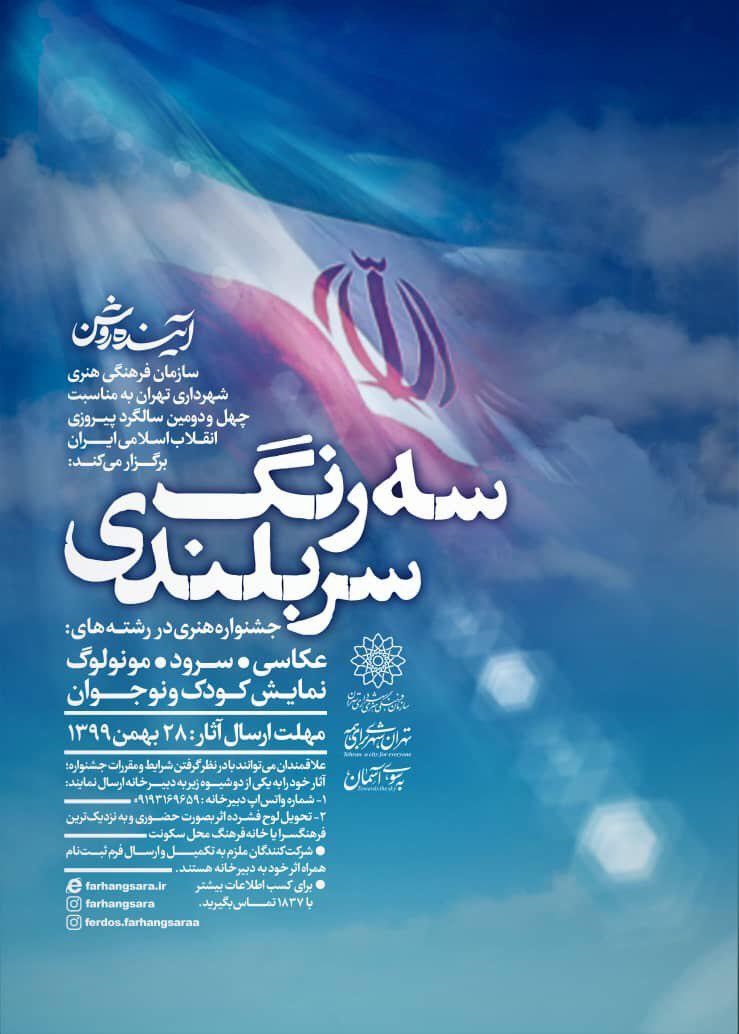 سازمان فرهنگی هنری شهرداری تهران به مناسبت گرامی‌داشت چهل و دومین سالگرد پیروزی شکوهمند انقلاب اسلامی ایران، جشنواره هنری «سه رنگ سربلندی» برگزار می‌کند
