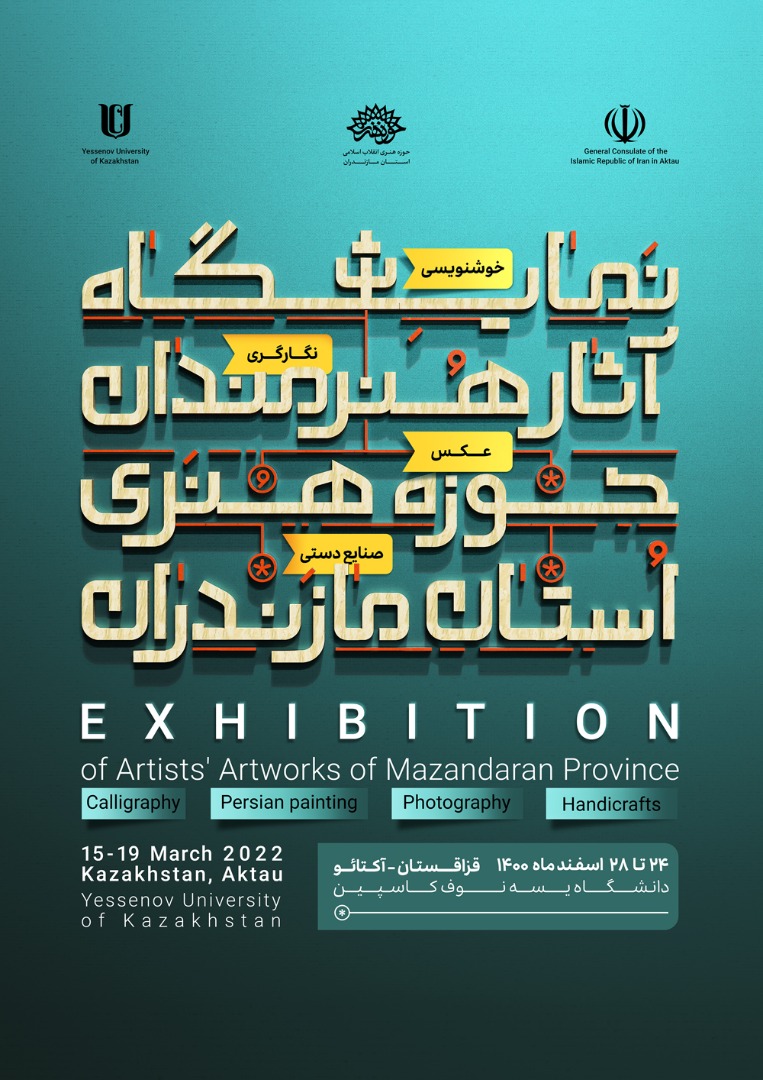 شایان ذکر است که نمایشگاه تولیدات تجسمی حوزه هنری مازندران در قزاقستان شامل ۲۰ اثر خوشنویسی و نگارگری، ۲۳ اثر عکس و ۲۸ اثر صنایع دستی به ارزش حدودی ۱۴۳میلیون تومان است و این رویداد در دانشگاه یسه نوف کاسپین آکتائو ۱۵ تا ۱۹ مارس ۲۰۲۲ برابر با ۲۴ تا ۲۸ اسفندماه ۱۴۰۰ برگزار خواهد شد.