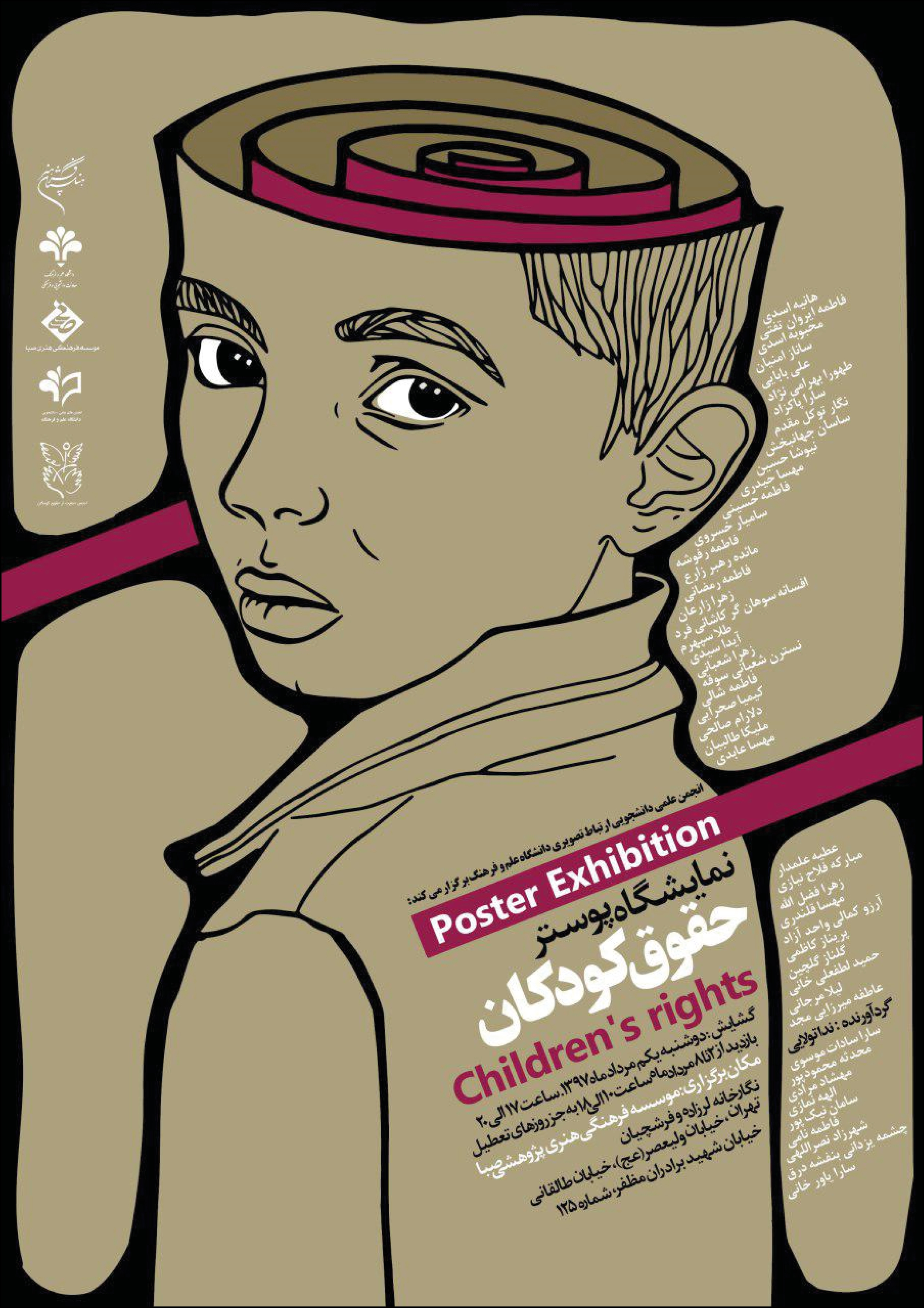 به گزارش روابط عمومی مرکز تجسمی حوزه هنری به نقل از روابط عمومی موسسه فرهنگی هنری صبا وابسته به فرهنگستان هنر، نمایشگاه پوستر «حقوق کودکان»، روز دوشنبه اول مرداد از ساعت 17 تا 20 در نگارخانههای «لرزاده» و «فرشچیان» گشایش مییابد.