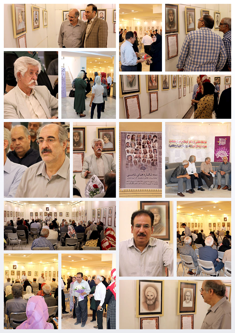 مراسم افتتاحیه نمایشگاه "نگاره های نامی" با موضوع مفاخر فرهنگی هنری کرمانشاه از مجموعه آثار استاد ایرج قبادی عصر امروز 18 شهریورماه در نگارستان سوره حوزه هنری استان گشایش یافت.