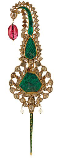 این جواهر میناکاری شده و دارای جواهر از شمال هند متعلق به اواخر قرن ۱۸ تا اوایل ۱۹. این اثر با قیمت تخمین زده شده معدل با ۲۵ تا ۳۸ هزار دلار چکش خواهد خورد.