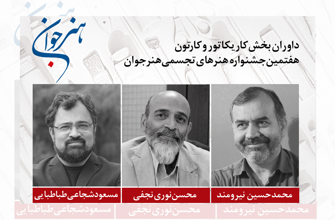 مسعود شجاعی طباطبایی، محمدحسین نیرومند و محسن نوری نجفی آثار کاریکاتور و کارتون جشنواره هنرجوان را ارزیابی و داوری خواهند کرد.