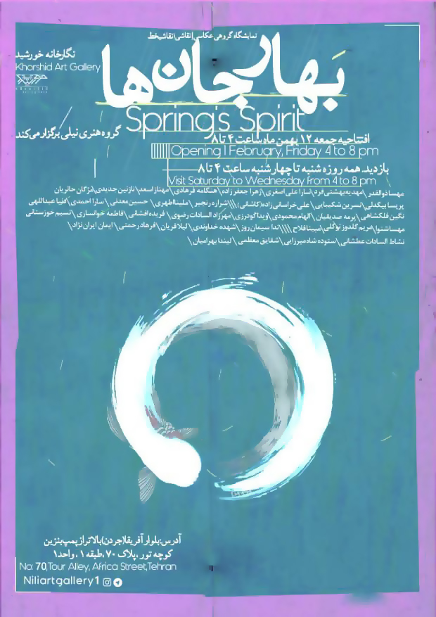 علاقهمندان جهت بازدید از آثار این هنرمندان میتوانند همه روزه تا ۱۷ بهمن ماه از ساعت ۱۶ الی ۲۰ به گالری خورشید واقع در جردن، بالاتر از پمپ بنزین، کوچه تور، پلاک ۷۰ مراجعه نمایند.