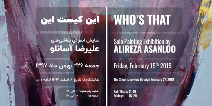 نمایشگاه آثار علیرضا اسانلو ۲۶ بهمن تا ۸ اسفندماه در گالری شیرین واقع در خیابان کریمخان زند، خیابان سنایی، کوچه ۱۳ شماره ۵ میزبان هنردوستان است.