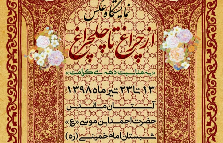 به گزارش روابط عمومی حوزه هنری انقلاب اسلامی استان فارس  سعید عبدالحسینی کارشناس مسوول هنرهای تجسمی حوزه هنری فارس ضمن بیان این مطلب اظهار داشت: نمایشگاه «از چراغ تا چلچراغ » مجموعه ای از عکس های هنرمندان از حرم های مطهر است که در آستان مقدس احمدی به نمایش در آمده است.