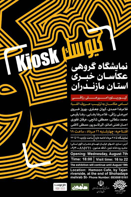 «مهدی معصومی گرجی» معاون فرهنگی هنری  و رییس خانه عکاسان حوزه هنری مازندران در این باره گفت: نمایشگاه گروهی عکاسان خبری که با عنوان «کیوسک» مطرح شده با همکاری این نهاد در کنار اداره کل فرهنگ و ارشاد اسلامی استان و نمایندگی خودرو حق پرست در سه دوره  به نمایش کارهای تنی چند از عکاسان خبرگزاری های مطرح استان و کشور می پردازد.