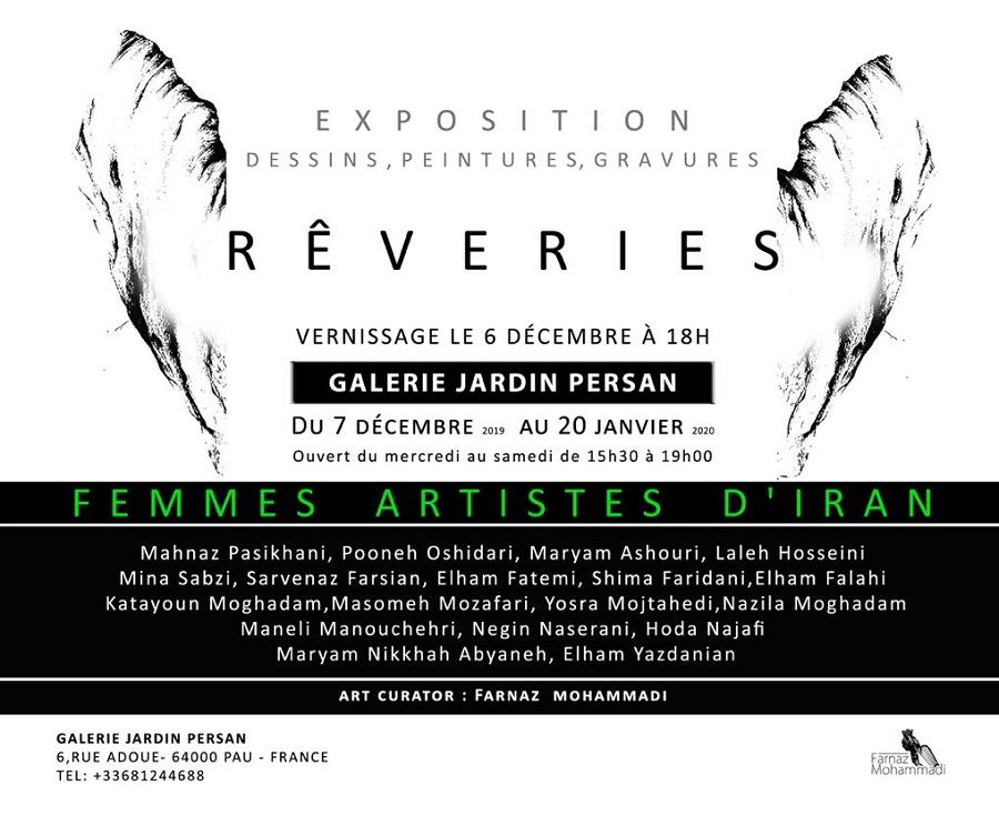 نمایشگاه Reveries از تاریخ 7 دسامبر آغاز شده و تا 20 ژانویه در گالری jardin person فرانسه ادامه دارد.